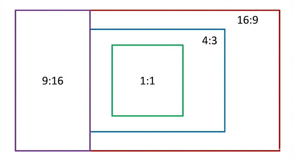 16:9 is the standard for HDTV, web video, and most computer monitors. 9:16 is the standard for mobile social media (Stories, Reels, TikTok). 4:3 is common for tablets and legacy TV.
