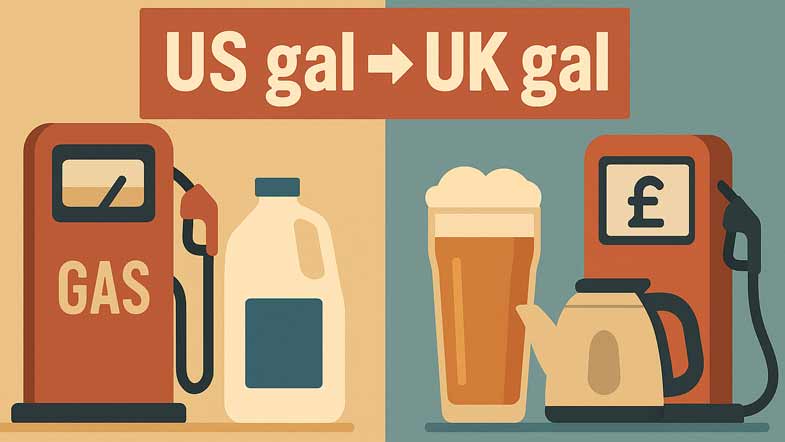 Tento online kalkulátor převádí objem z amerických tekutých galonů (US gal) na britské galony (imperiální galony, Imp gal). Faktory jsou založeny na přesných definicích litru: 1 US gal = 3.785411784 L; 1 imperiální gal = 4.54609 L. Poměr je pevný a sledovatelný k SI (litr), vhodný pro vaření, logistiku paliv, balení a technické specifikace. Tento nástroj je obzvlášť užitečný pro české uživatele, kteří se zabývají výrobou piva nebo jinými průmyslovými aplikacemi.