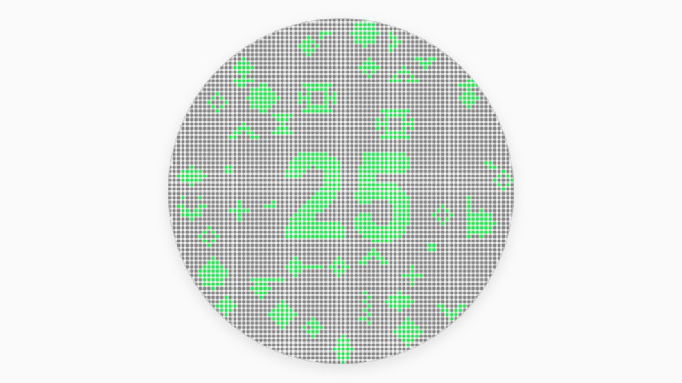 - Look at the circle and identify the number formed by the coloured dots (green vs grey background)